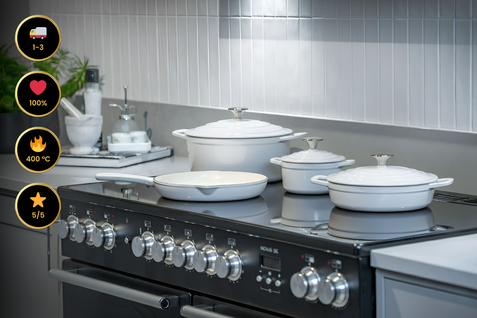 Mycket bra kvalitet och vacker design! Grytorna är stabila och enkla att använda. ❤️