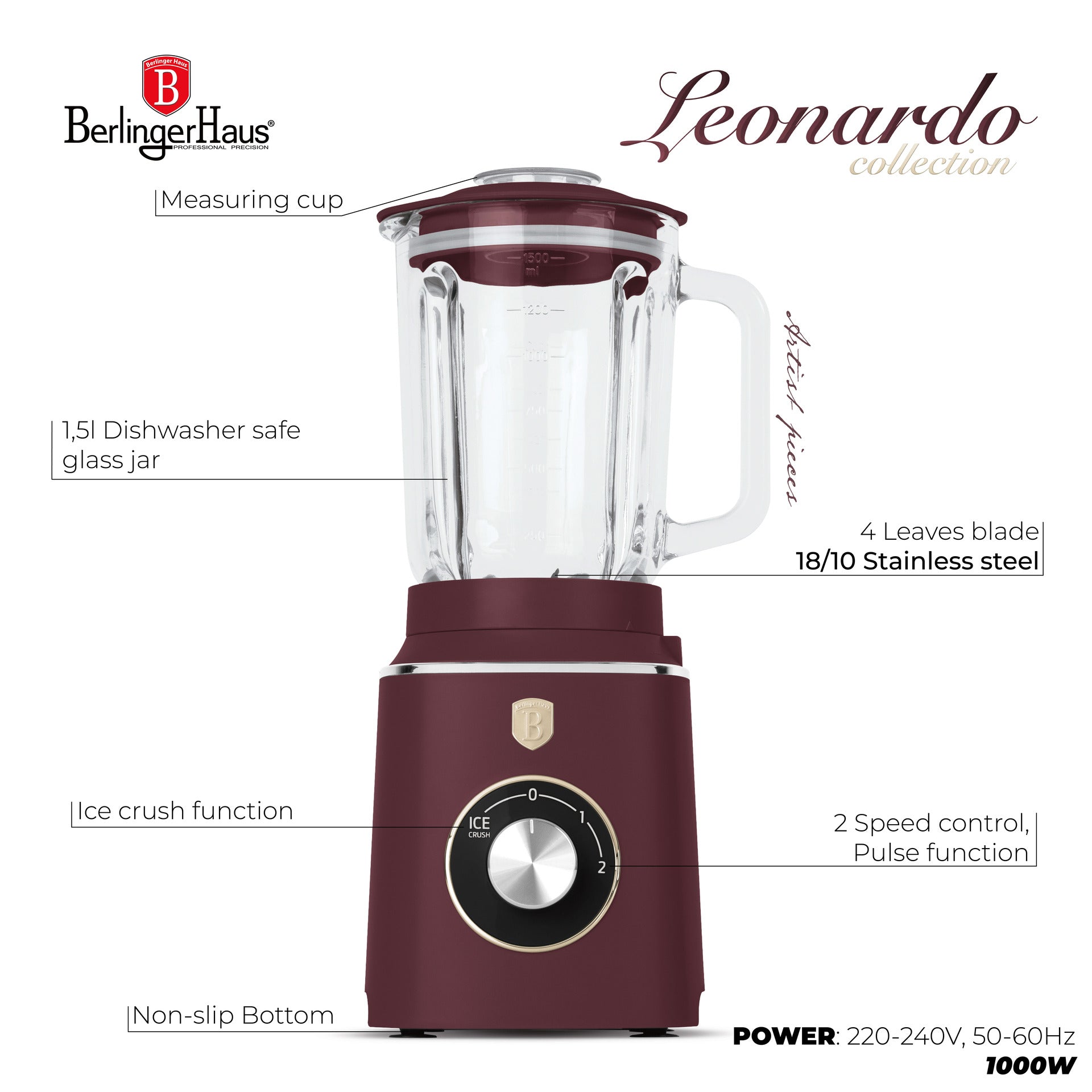 Berlinger Haus Countertop Blender – 1000W with 1.5L Glass Jug